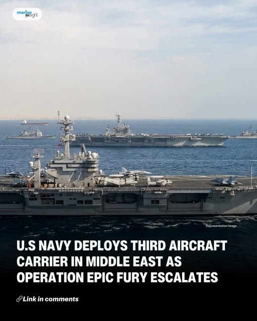 The United States Navy has reportedly deployed a third aircraft carrier strike group to the Middle East as tensions rise during the expanding military campaign known as Operation Epic Fury. Defense analysts say the move represents a significant escalation in regional military readiness and reflects growing concerns over maritime security, energy infrastructure protection, and global